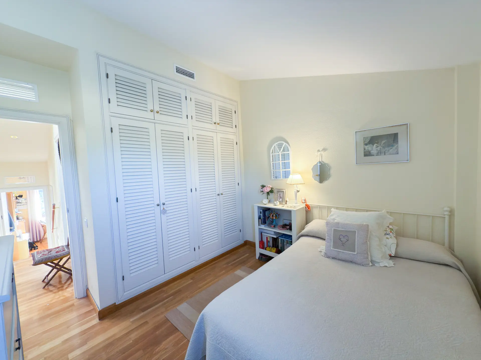 Gracias a su ventilación cruzada y a su orientación de Levante a Poniente, la luz natural recorre toda la casa. Cuenta con cuatro dormitorios amplios con armarios empotrados, dos baños completos (uno en suite), despensa y trastero dentro de la vivienda y una plaza de garaje con acceso directo desde el ascensor, adaptada para personas con movilidad reducida.