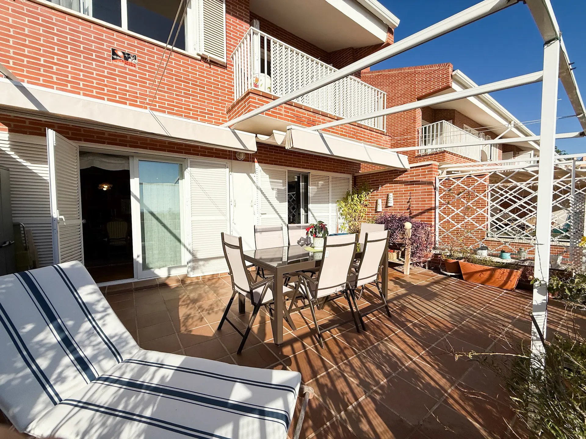 Esta terraza es el mejor escenario, sin duda, para las comidas o cenas familiares y cuenta con un amplio toldo corredizo.